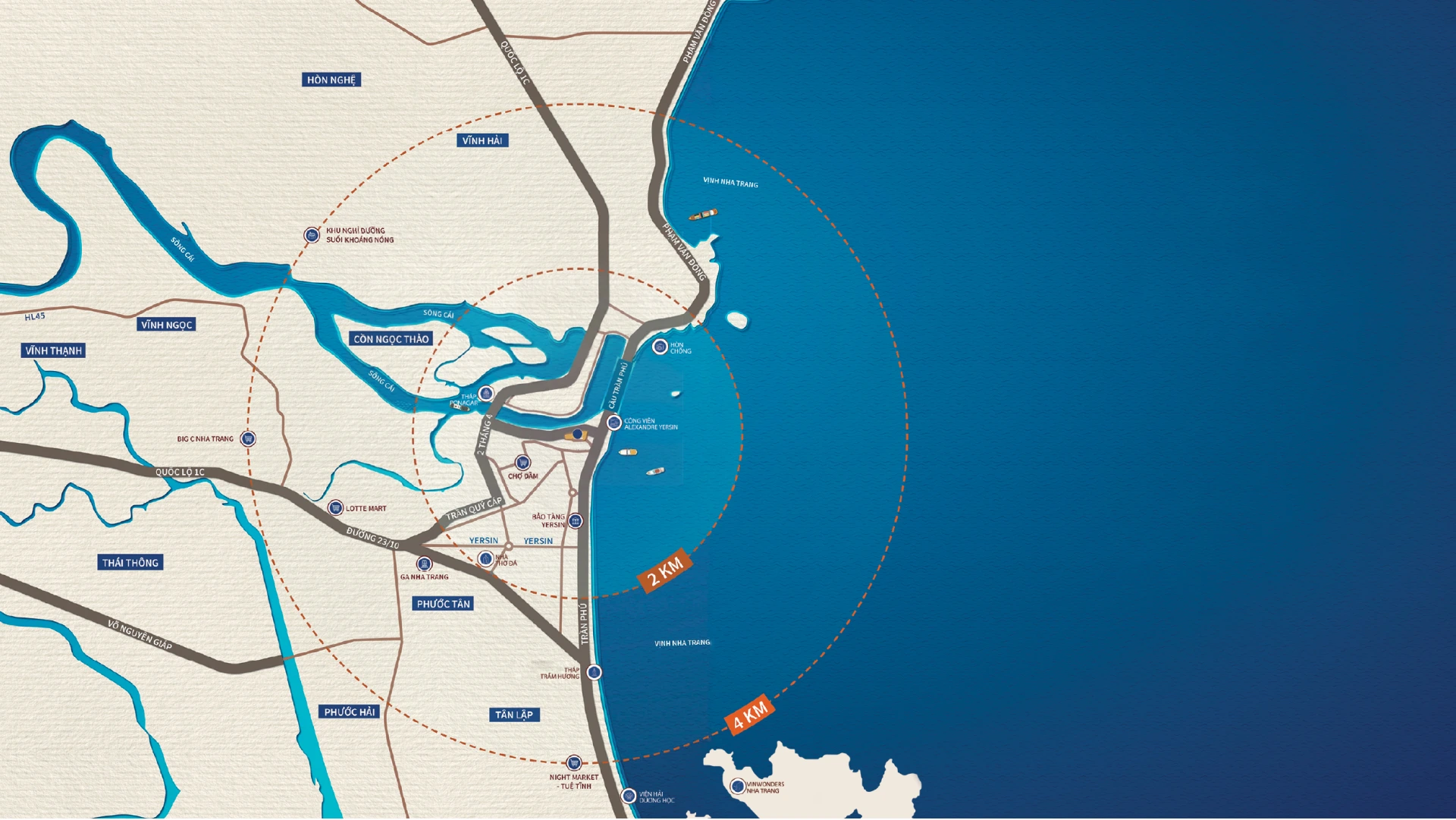 Welltone Luxury Residence tọa lạc trên ‘cung đường tỷ đô’ Trần Phú, ngự trị tại vị thế ‘kim cương’ độc tôn bậc nhất Nha Trang. Nơi đây là điểm giao thoa hiếm có, nơi dòng chảy thịnh vượng của Sông Cái gặp gỡ tinh hoa của Vịnh Nha Trang, kiến tạo di sản ‘kế sông – cận biển’ đầy vượng khí.